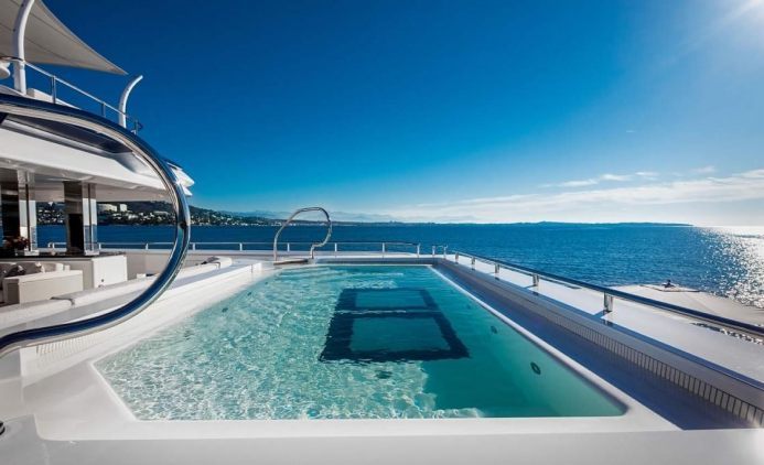 Проектировка и строительство бассейна с изменяемой геометрией в ограниченном пространстве яхты. Срок выполнения работ - 8 месяцев. Было принято решение применить уникальную технологию подъёмного дна, которая позволяет использовать дно бассейна как часть палубы. Подготовлена проектная документация, проведен полный комплекс строительно-монтажных и отделочных работ, инженерного обеспечения.